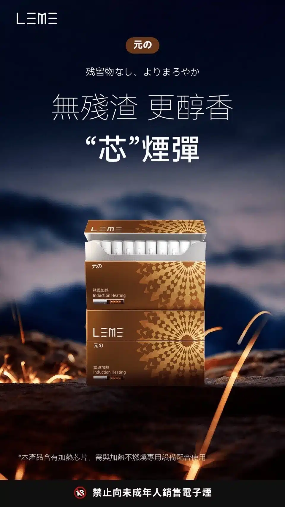 LEME樂美原味 4.0 加熱菸 採用全新環繞式加熱技術,專為 IQOS 4.0、T牌等電磁主機設計,透過內嵌加熱片技術,將煙草棒內的菸草均勻加熱至不高於350°C,提供更加濃郁與純正的煙草風味。